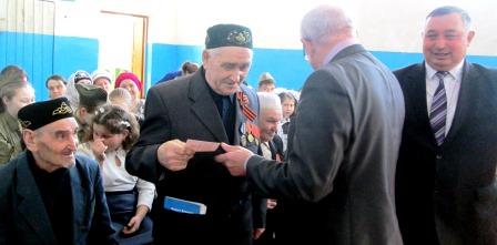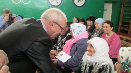 Медальләр тапшырырга район Башкарма комитеты җитәкчесе Ш.А. Алиуллов килгән иде. Ул ветераннарыбызны Бөек Җиңүнең 70 еллыгы белән котлады, аларга исәнлек,бәхетле картлык теләде. Мәктәп коллективлары, мәдәният йортлары тарафыннан ветераннарга концерт, табын оештырылган иде. Ветераннарыбыз бик кәнагать булдылар. Җитәкчеләребезгә рәхмәтләрен җиткерделәр.